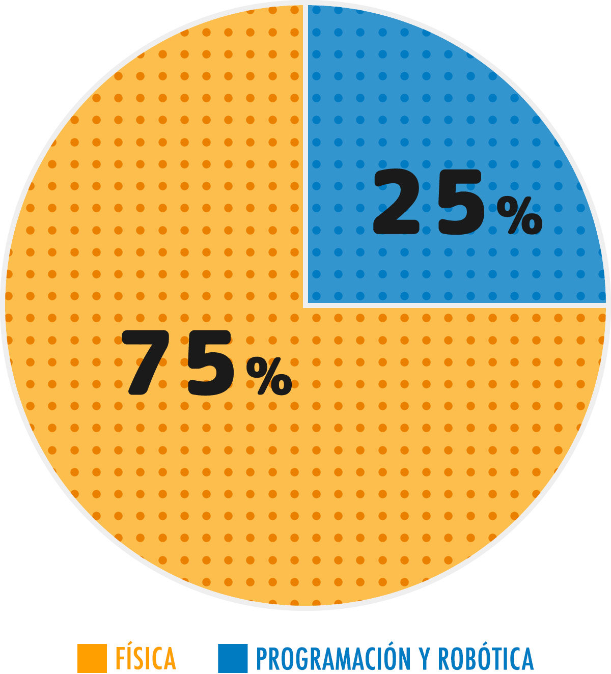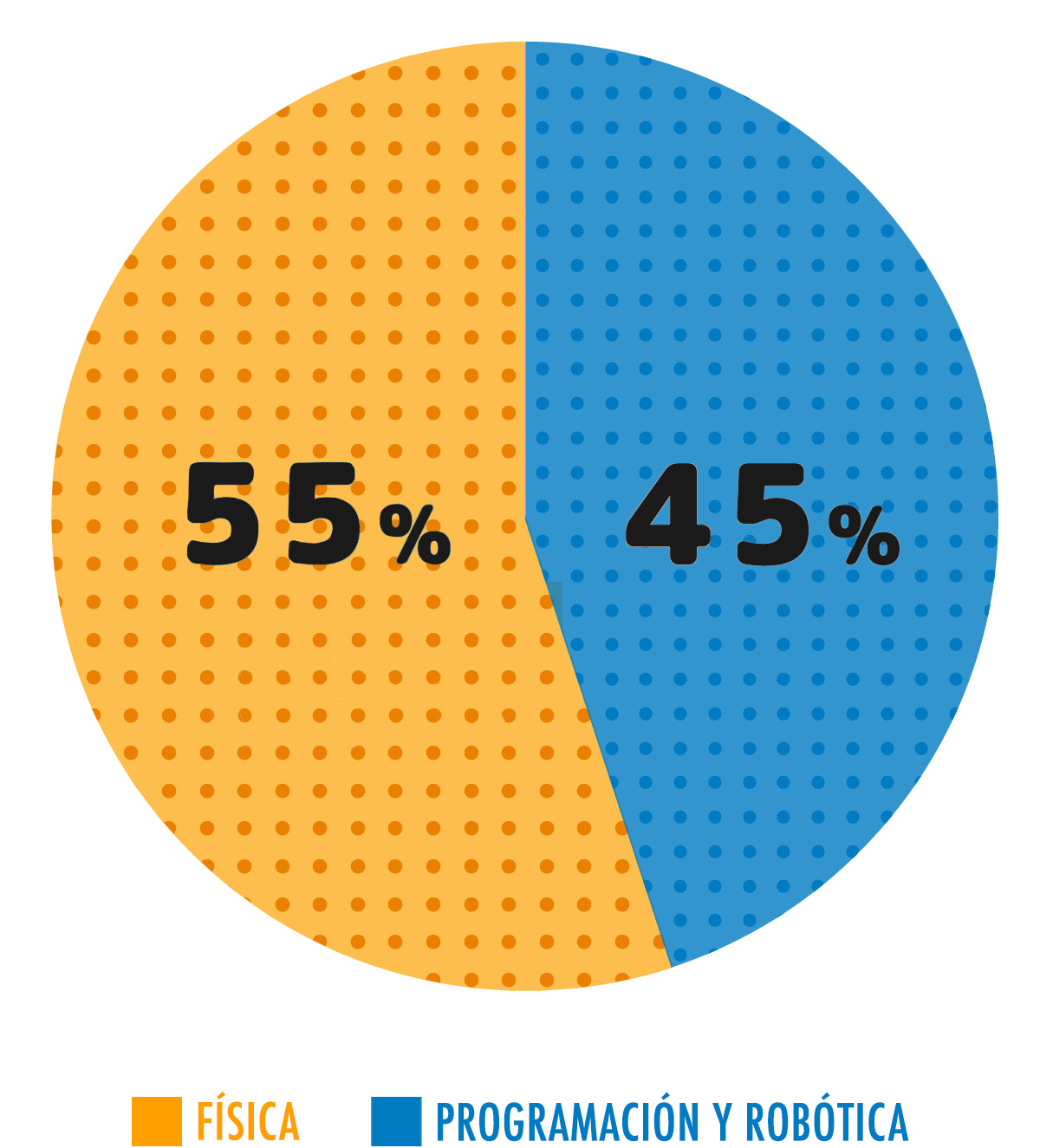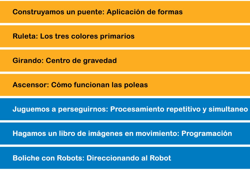 Alrededor del 55% del contenido de la lección se centra en el área de física, donde se utilizan bloques y se aplica la programación. El 45 % restante está dedicada a la Programación y Robótica, donde aprenderán a manejar robots.